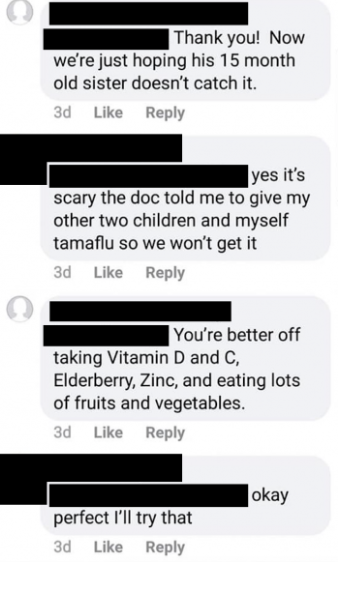 WIVBreports four-year-old Najee’s mother was a part of a Facebook group called “Stop Mandatory Vaccination” where users give each other medical advice about the flu and other illnesses. She said her ten-month-old son and her five-year-old were tested positive for the flu and their pediatrician had prescribed Tamiflu for the entire household but the group’s participants told her not to give it to her children.