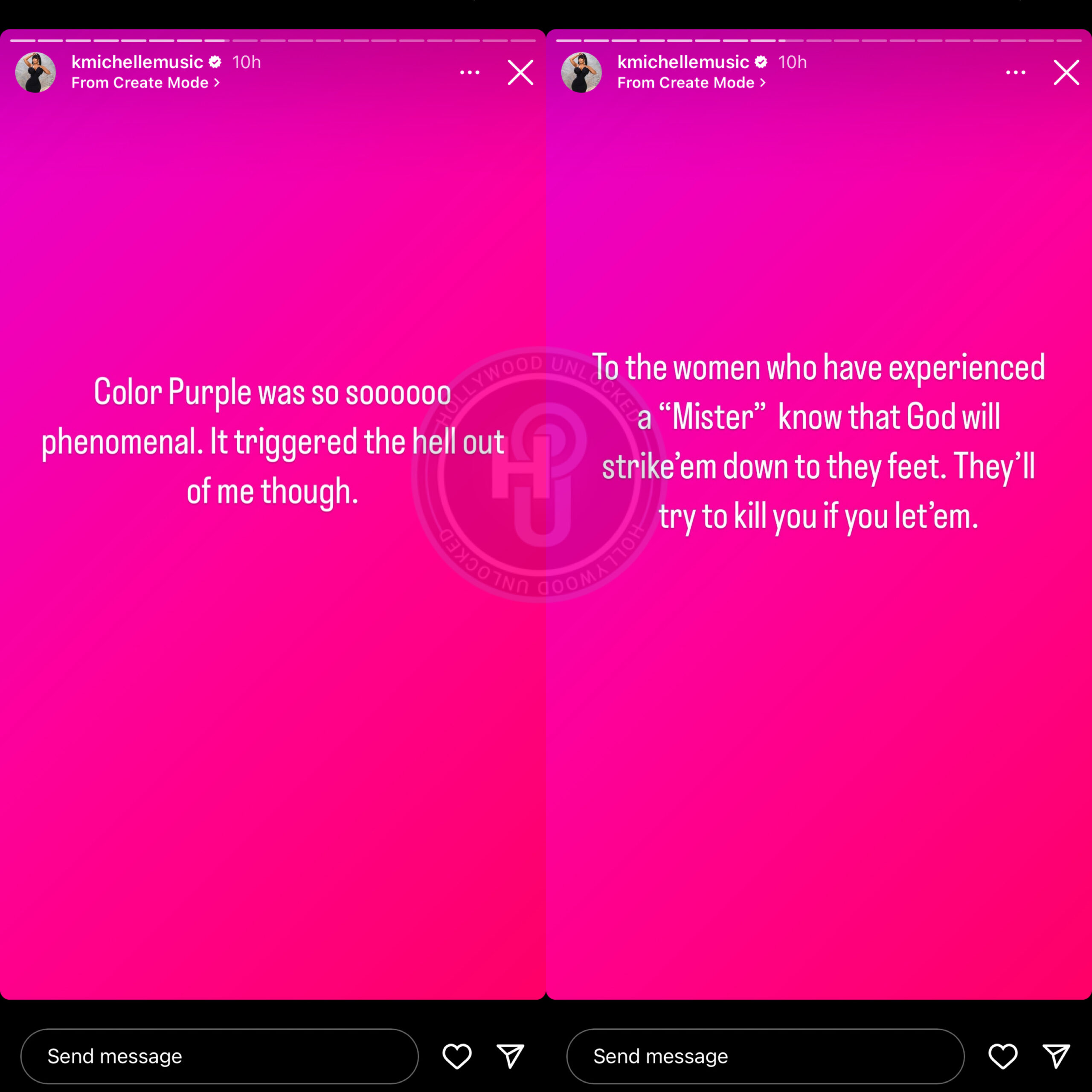 The remake of the old hit classic stars Fantasia Barrino, Halle Bailey, Danielle Brooks, Taraji P. Henson, Ciara, and Jon Batiste (among others). Fans rushed to see it on Christmas Day including singer K. Michelle. The former reality star took to social media to share her reaction to the highly anticipated film. While she said it was “phenomenal” she also admitted that it “triggered her.” She said in an Instagram Story post, “Color Purple was so soooooooo phenomenal. It triggered the hell out of me though,” K. Michelle began. “To the women who have experienced a “Mister” know that God will strike em down to they feet. They’ll try to kill you if you let’em.” She continued,
