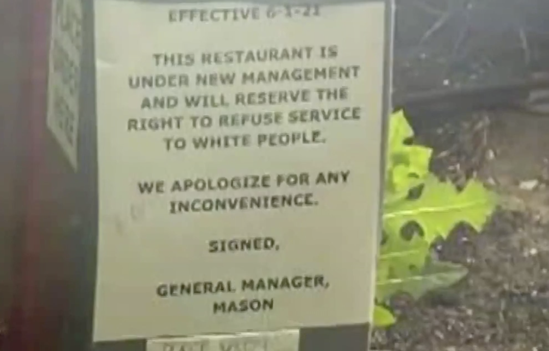 The incident occurred at a Popeyes restaurant in Lake Saint Louis, Missouri where authorities say the sign was posted in the drive-thru lane. Additionally, they believe someone other than an employee posted the sign as a bad joke and it quickly became viral on social media as reported by KMOV4. It reads, “Effective 6-1-21 this restaurant is under new management and will reserve the right to refuse service to white people. We apologize for any inconvenience. Signed, general manager, Mason.”