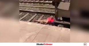 An Indian woman getting off the track and talking on the phone after a train passes over her. pic.twitter.com/aCNxUPS12A
